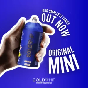 The GoldWhip Mini 200g N20 tanks is a smaller, more portable nitrous oxide cream charger that offers more capacity than traditional 8g cartridges, while still being lightweight and easy to carry. Whether you’re working in a busy kitchen, hosting events, or experimenting at home, the GoldWhip Mini 200g N2O Tanks delivers professional-grade performance in a compact size.